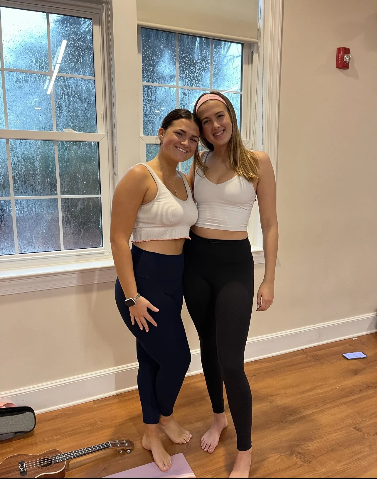Due to rainy weather that morning, Gamma Phi’s members needed to change plans at the last minute. While the event was originally planned to be held on Langford Green, they had to act on the spot with moving the event indoors. They offered 30-minute shifts for sisters to learn yoga poses, and then eat with their friends. Moving the event into the house worked even better than expected! Elizabeth N., the Education Vice President Assistant, said that despite the changes, being surrounded by sisterhood in the chapter facility was more than welcome.